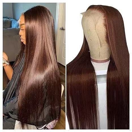 Cuticle Transparent 4X4 Lace Closure Wigs Cuticle Aligned Silky Straight Wave Wigs Pre-Plucked Straight Wig Brown Color 10-32"